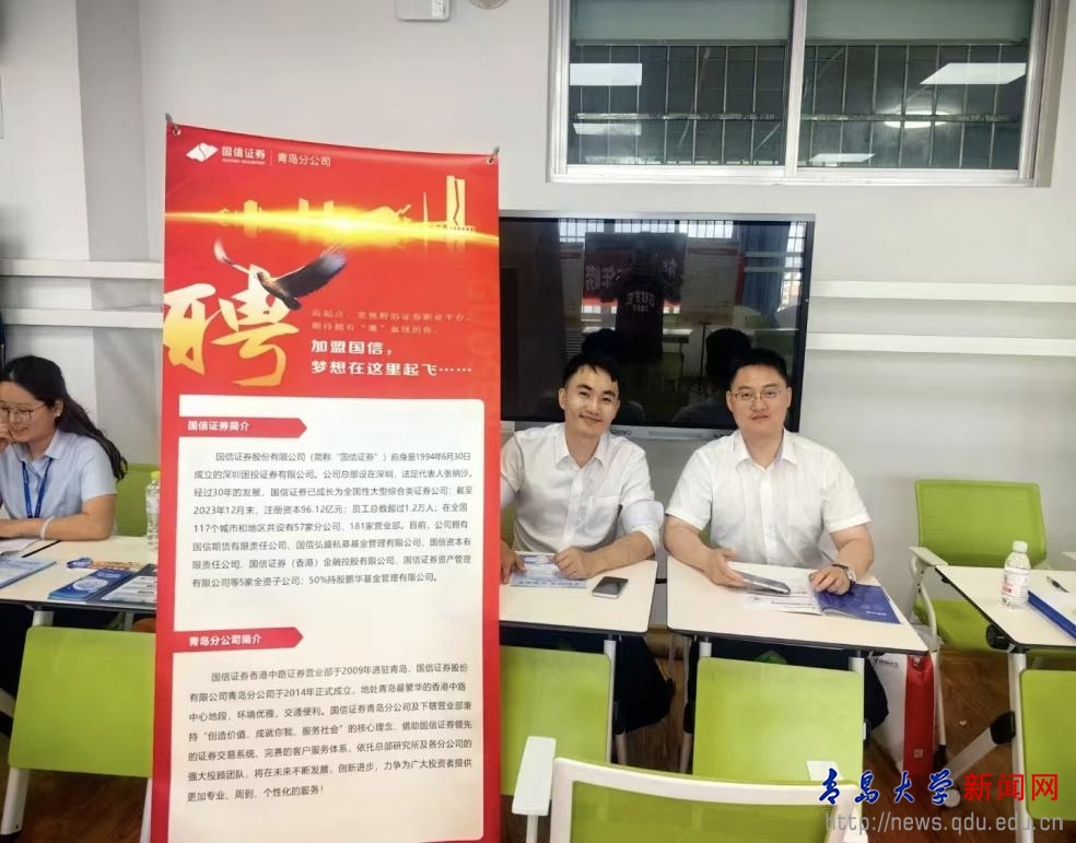 新闻网讯 6月5日下午,经济学院联合青岛金家岭金融聚集区管理委员会、崂山区委组织部、崂山区人力资源和社会保障局等部门于守实楼413、415举办2025年“招才引智名校行”金融专场引才招聘会。