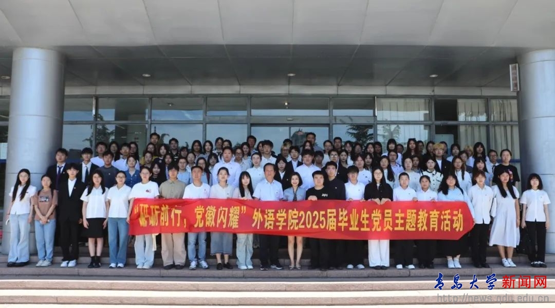 新闻网讯 为强化毕业生党员理想信念教育,筑牢思想根基,引导毕业生党员在新征程中践行初心使命,6月12日上午10时,外语学院于浮山校区博文楼217室举办“砥砺前行,党徽闪耀”2025届毕业生党员主题教育活动暨离校前最后一堂党课。外语学院党委书记陈崇研、党委副书记于苗、副院长布占廷、各学生党支部书记及全体毕业生党员参与此次活动,活动由学生第一党支部书记张淑敏主持。