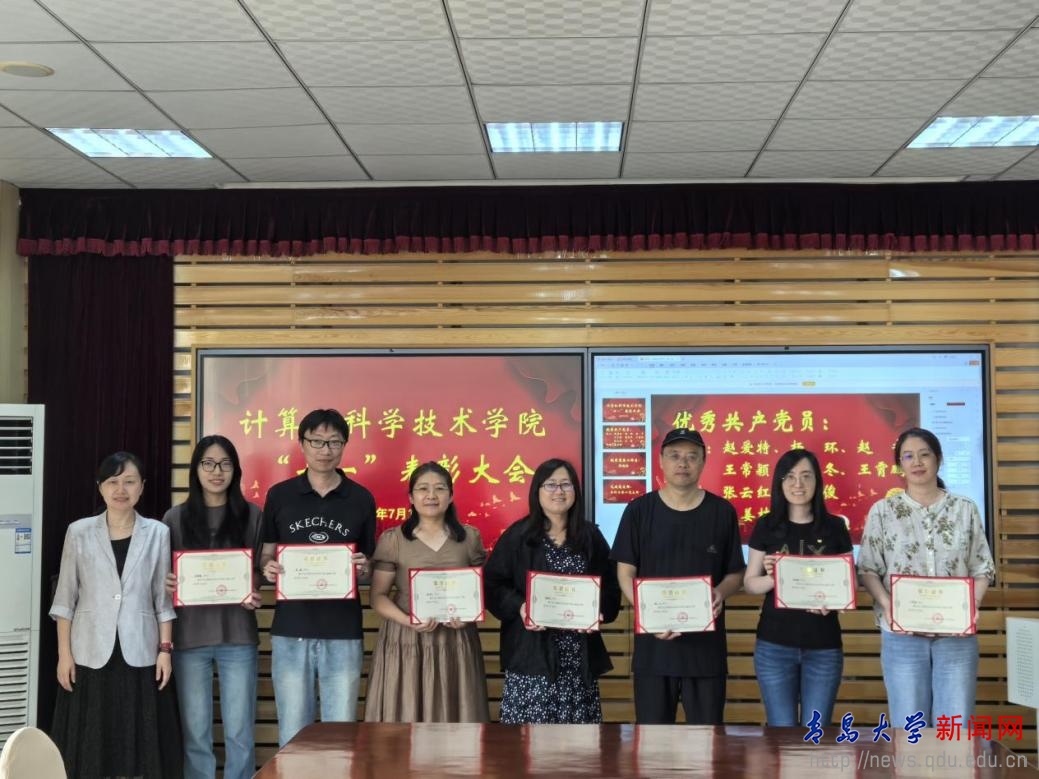 新闻网讯 7月1日下午,计算机科学技术学院在博知楼510会议室隆重举行“七一”表彰会。院党委中心组成员、受表彰的优秀党员、院机关及各党支部师生党员代表等出席表彰活动。院党委书记潘秋鸿,副院长王国栋、杜祥军为荣获表彰的集体和个人颁发荣誉证书,院党委副书记彭双凤主持会议。