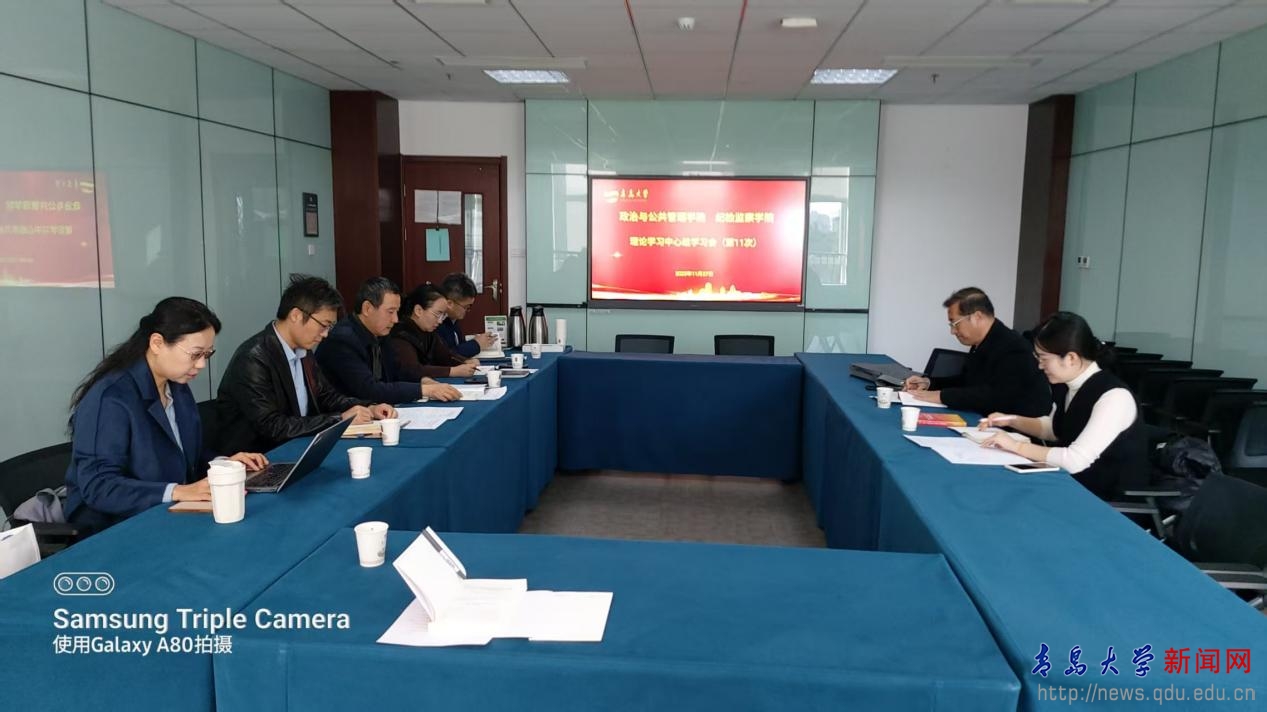 新闻网讯 11月27日下午,政治与公共管理学院在学校会议中心209会议室召开党委理论学习中心组理论学习会,专题学习党的二十届四中全会精神。校党委理论学习中心组列席旁听第三工作组组长、离退休工作处党委书记宋佐东,宣传部正科级干部张雯列席旁听,学院党委理论学习中心组成员全员参会,会议由学院党委书记尹文博主持。