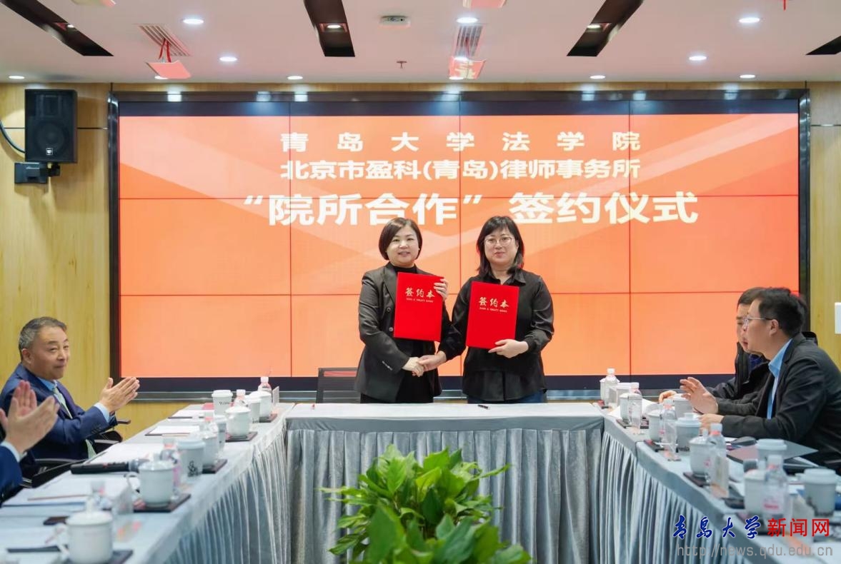 蔡颖雯与盈科青岛所主任于靖代表双方签署合作协议。