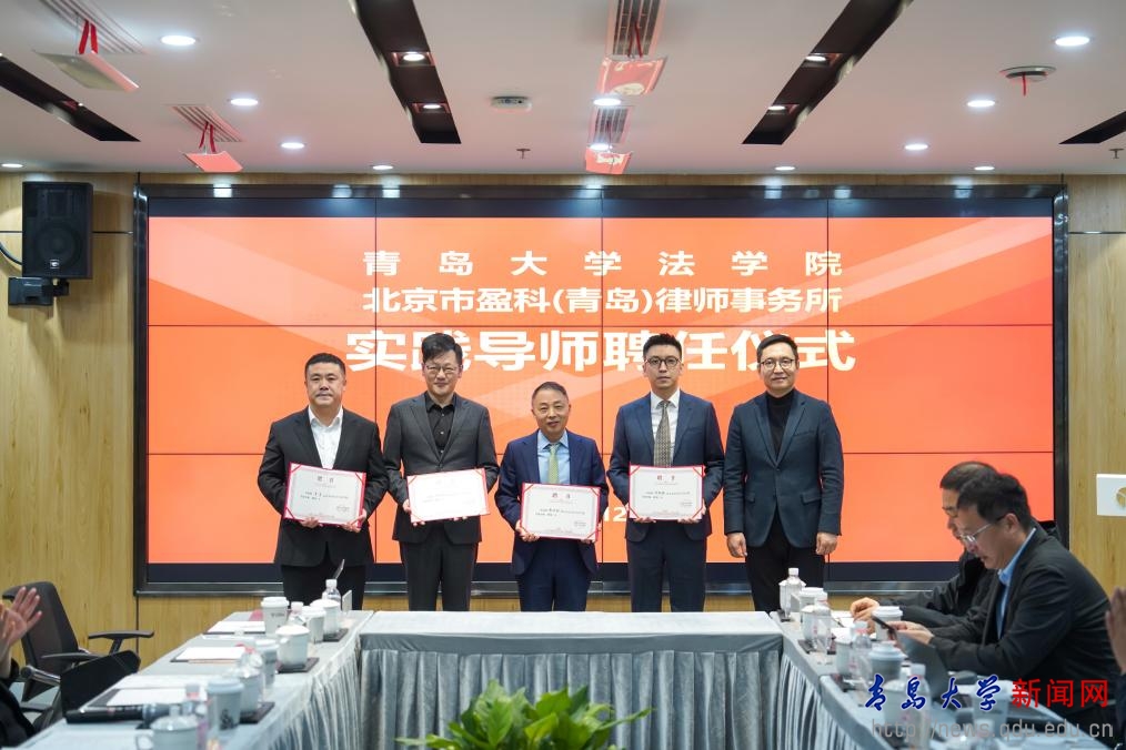 马卫东为盈科青岛所郝兴利、伊廷科、高蓓、李崇、于连青、巩振腾律师颁发“MILE米乐官方网站法学院实践导师”聘书。