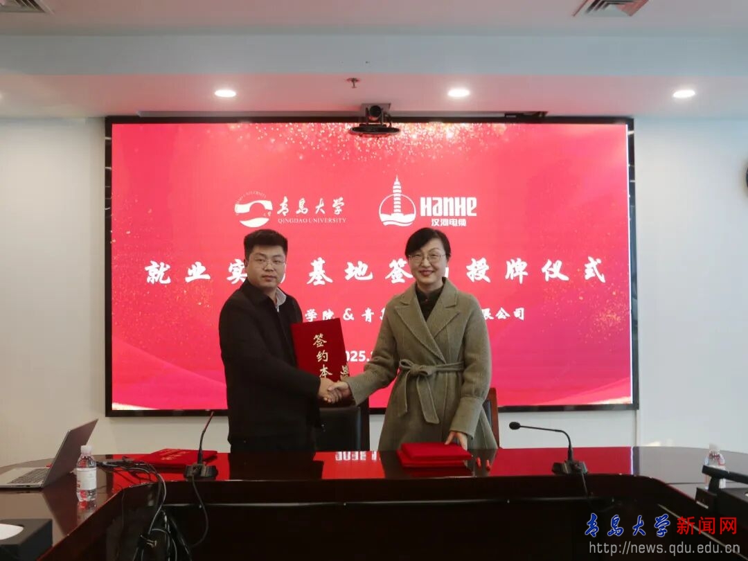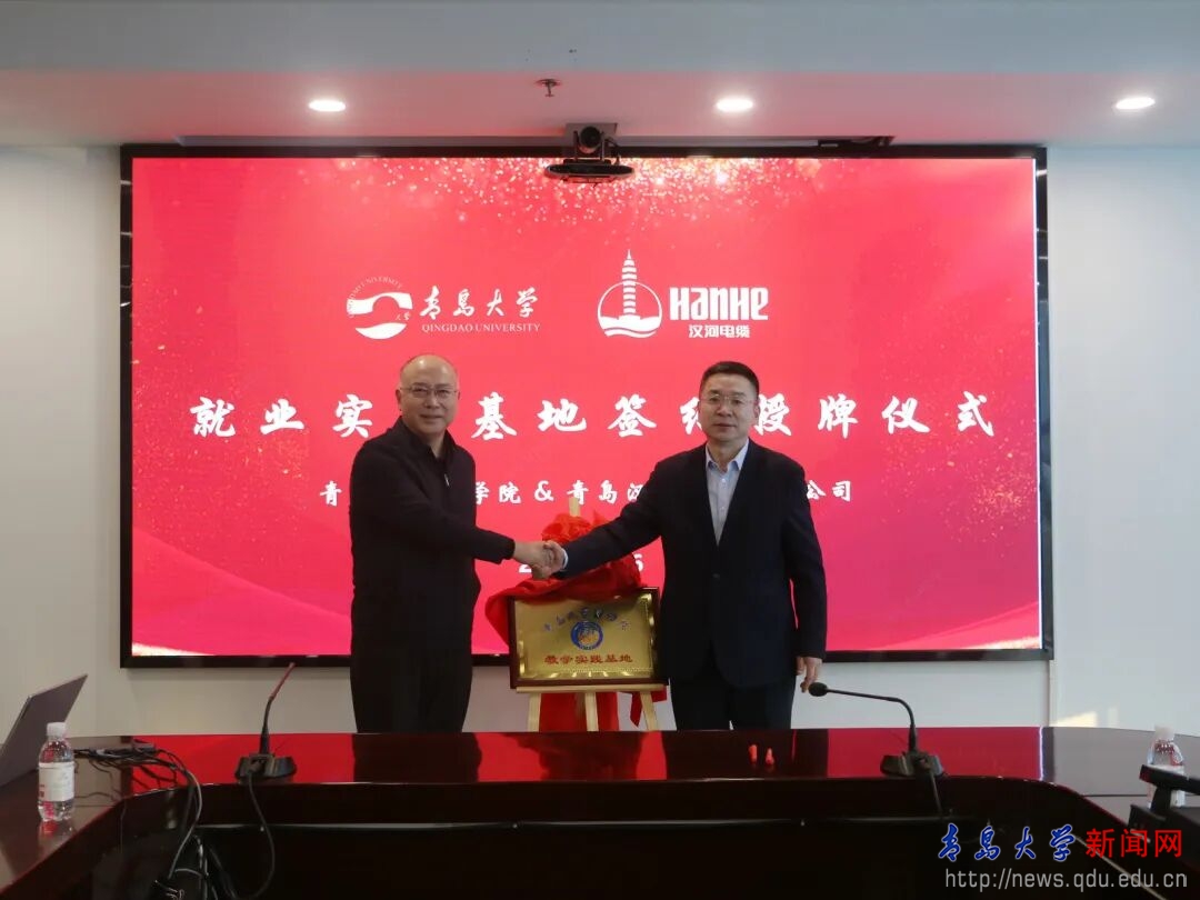 王庆金与张立刚共同为“MILE米乐官方网站商学院教学实践基地”揭牌。尼梅颉与汉缆股份副总经理张兵共同签署了《合作建设本科教学实习基地协议书》。