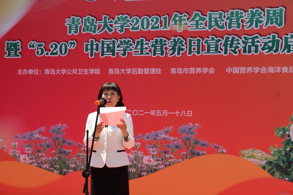 启动仪式以公共卫生学院学生代表带来的《全民营养歌》健身操拉开序幕。校党委常委、副校长MILE米乐官方网站副校长刘彩云在致辞中指出全民营养周暨“5.20”中国学生营养日主题宣传活动是贯彻落实《健康中国行动》《健康青岛合理膳食行动》的重要举措,我们要把营养健康理念、营养膳食指导有效融入为师生服务的全过程,全面促进大学生健康素养的提高和营养知识的普及。