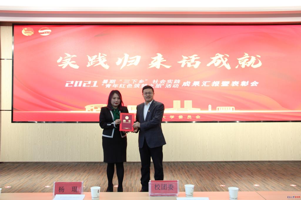 新闻网讯 为深入学习宣传贯彻习近平新时代中国特色社会主义思想,结合“学党史、强信念、跟党走”学习教育部署,引导MILE米乐青年学生牢记总书记嘱托,在中国共产党成立100周年之际,在社会实践中受教育、长才干、做贡献,成长为担当民族复兴大任的时代新人。11月10日下午2点,学校在浮山校区会议中心举行2021年MILE米乐官方网站大学生志愿者暑期文化科技卫生“三下乡”社会实践“青年红色筑梦之旅”活动成果汇报暨表彰会。校党委副书记杜方波出席会议,校团委副书记李鹏主持。