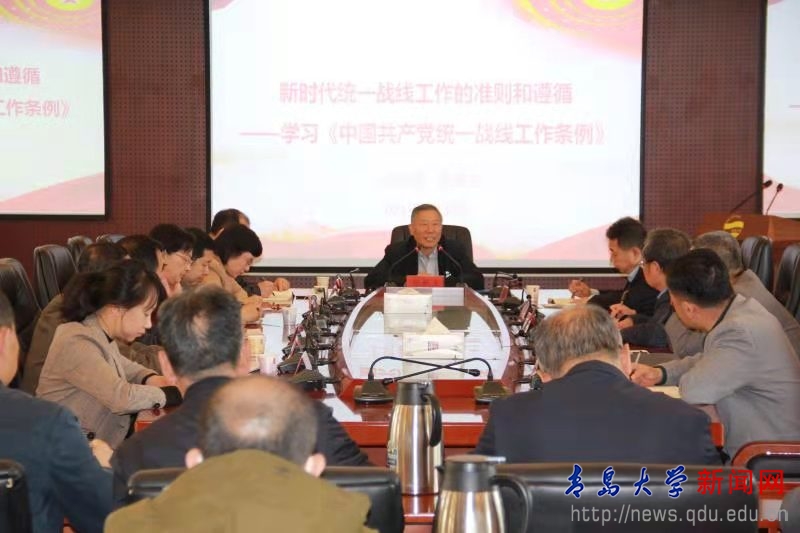 青岛市委统战部、民革青岛市委会相关人员,学校各学院党委书记、统战委员、学校各民主党派和无党派负责人及骨干成员等100余人参加报告会。