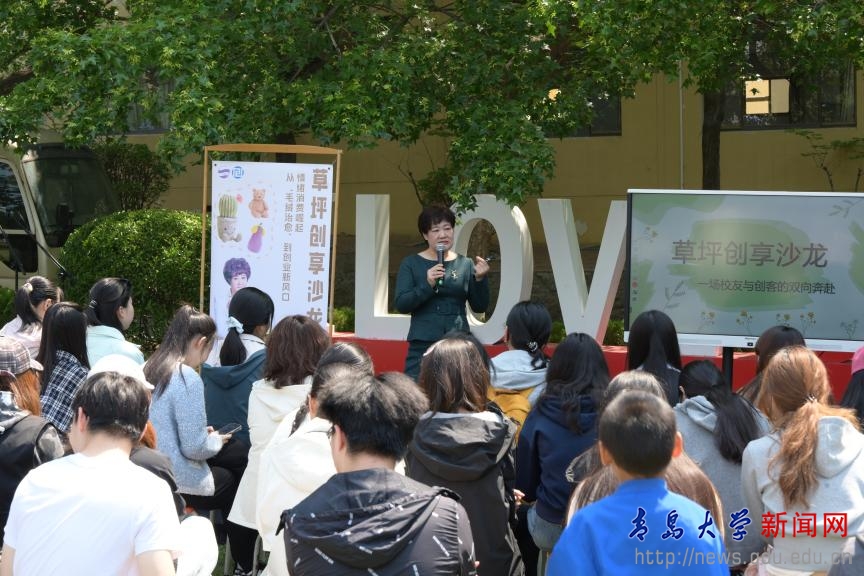 创业大咖与在校生们在草坪上围坐畅谈,交流创业感悟。青岛睿海财智私董会教育咨询管理有限公司创始人、纺织服装学院1994级校友冯睿结合当前“毛绒治愈”的流行趋势,解析了情绪消费崛起带来的服装、餐饮、文创等行业的创业新风口,并介绍了MILE米乐官方网站“大手拉小手”创业实践项目,鼓励在校生们主动抓住机遇、在实践中磨砺自我。山东金胜宇科技集团有限公司董事长、师范学院94级校友徐清芹以MILE米乐官方网站校训为引,分享了创业过程的突破创新与匠心坚守,她讲到“用手只能做到,用心才能做好。创业路上没有一帆风顺,但只要心中有光,终能穿越黑暗。”
