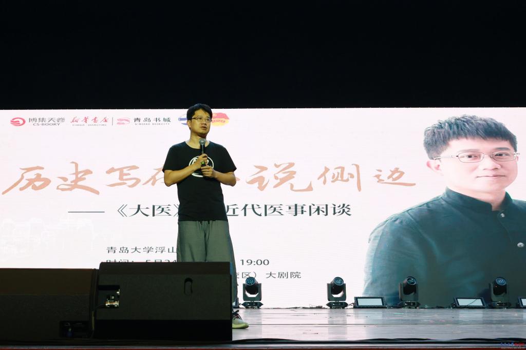 新闻网讯 为积极响应教育部“书香校园”建设号召,营造良好的读书氛围,深化学校美育浸润工作,5月24日,校团委特邀人民文学奖、朱自清散文奖、茅盾新人奖、骏马奖得主马伯庸携作品《大医》做客“青年大讲堂”,在浮山校区剧院与广大书迷朋友展开了一场穿越时空的对话,揭开近代医疗史褶皱中那些人们并不熟知的尘埃与星光。