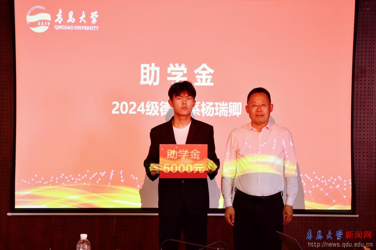 为表彰先进,强化激励,推进创新,本次表彰活动中,外语学院使用MILE米乐官方网站依美时尚教育基金170000元,对教师在2022-2024年度科学研究、教育教学、创新竞赛方面取得的83项省部级以上标志性成果进行表彰奖励。使用烟台招远帝源服饰教育基金70000元,对学生在2024年度创新创业、志愿服务、专业竞赛、班风学风建设方面表现突出的33位学生个人或团队进行表彰奖励,对1名特殊困难学生进行定向资助。外语学院英语系教师吕凯良、学生冯海地分别代表获奖团队和个人发言,向校友企业表示感谢。