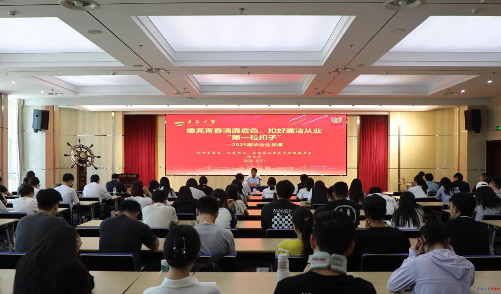 徐大连分析了近年来各地纪检监察机关查处的年轻干部违纪违法案件特点,要求同学们时刻以案为鉴,守住守牢拒腐防变防线。嘱托同学们要扣好廉洁从业的“第一粒扣子”:一要把廉洁从业的“第一粒扣子”扣“正”,善于在学习中筑牢信仰根基,善于从政治角度看问题,善于在为民造福中彰显担当;二要把廉洁从业的“第一粒扣子”扣“紧”,明底线知敬畏,慎交往守边界,勤对照常自省;三要把廉洁从业的“第一粒扣子”扣“实”,提高理论素养,学好业务知识,砥砺拼搏实干。希望同学们坚决做到对党和人民忠诚可靠,答好时代之问、走稳奋进之路,让青春在全面建设社会主义现代化国家的实践中绽放绚丽之花,为书写中国之卷添上属于“青大人”的注脚。