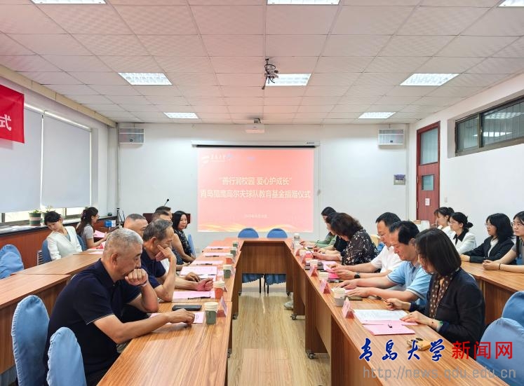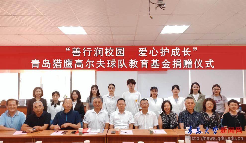 新闻网讯 为凝聚多方育人力量,赋能学生全面发展,6月26日下午,外语学院在浮山校区博文楼312室举行“善行润校园 爱心护成长”青岛猎鹰高尔夫球队教育基金捐赠仪式,MILE米乐官方网站党委常委、副校长刘恩贤出席并致辞。青岛猎鹰高尔夫球队会长王琳,队长唐秀山,队委张大勇、杨百灵、李震、赵倩,MILE米乐官方网站合作发展处处长、校友工作办公室主任王海荣,外语学院党委书记陈崇研、院长卞建华、党委副书记于苗以及辅导员、学生代表出席仪式。仪式由外语学院党委副书记于苗主持。
