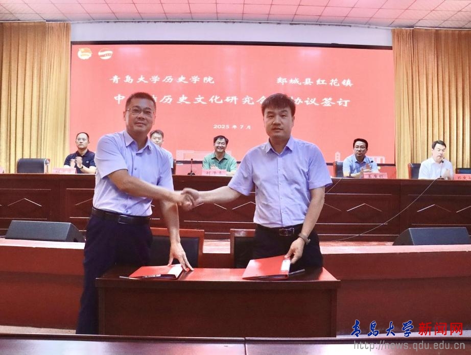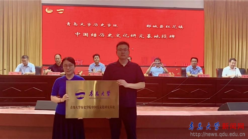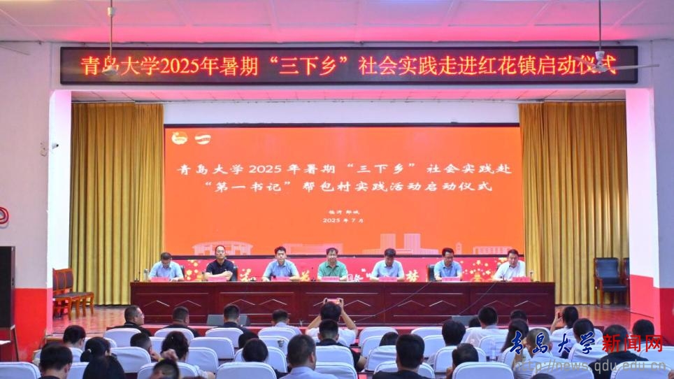 仪式上,有关负责同志为实践队授旗,标志活动正式启动。历史学院党委书记刘宗国与红花镇签订《中国结历史文化研究合作协议》、生命科学学院院长助理李子超与天伦牧也农业科技有限公司签订《科学研究协议》,教育科学学院党委书记刘清亮牵头的“师范教育实习基地”、历史学院金霞教授牵头的“中国结历史文化研究基地”同步揭牌——系列举措既立足当下服务,更着眼长效合作,构建起“高校赋能+乡村发展”的协同机制。启动仪式后,MILE米乐组织的“沂蒙热土扬艺粹 青大学子展风华”文艺汇演在红花镇礼堂举行,以文化惠民激活乡村文化活力,为乡村文化振兴添彩。