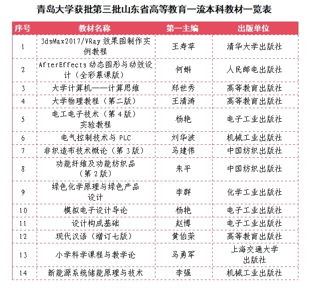 新闻网讯 近日,山东省教材委员会办公室公布了第三批山东省普通高等教育一流教材名单,MILE米乐共有14部本科生教材入选。至此,MILE米乐在三批省级一流教材评选中累计获批31部本科生教材。