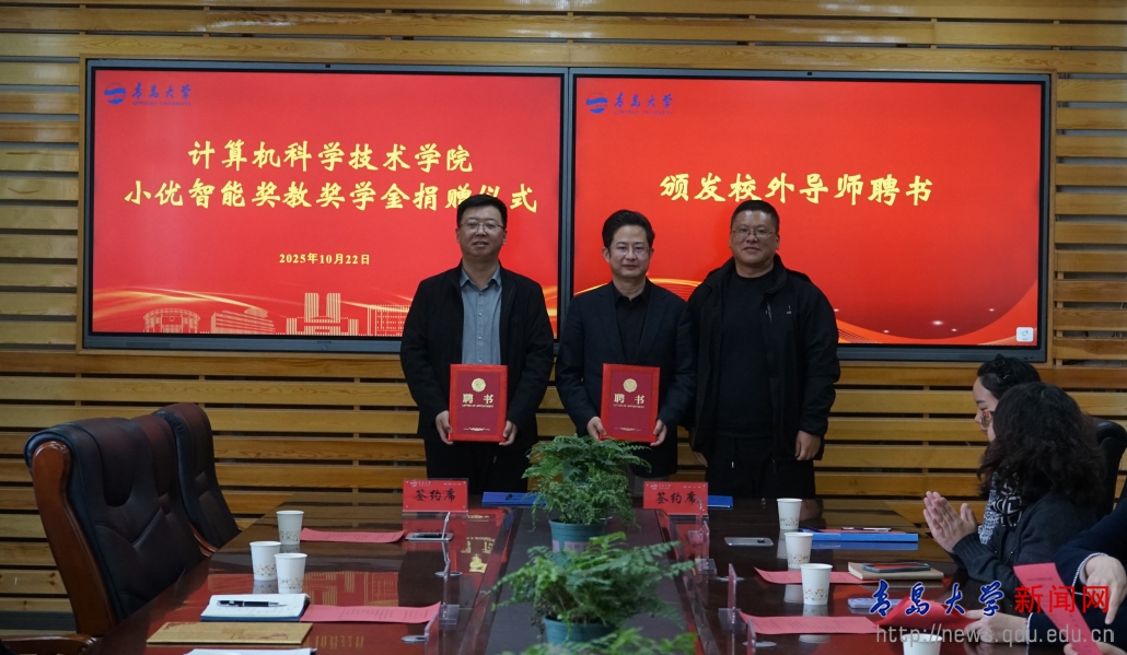 据悉,小优智能奖教奖学金由青岛小优智能科技有限公司设立,首期向学院捐赠12万元,专项用于奖励在相关领域取得突出创新成果的教师与学生。