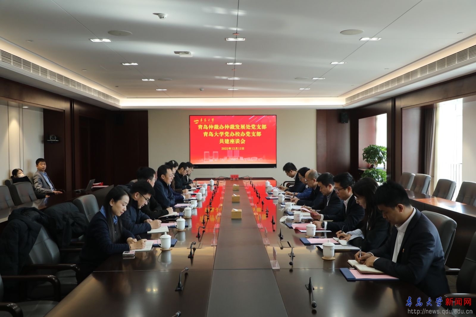 新闻网讯 为深入推进基层党建与业务工作深度融合,积极探索校地党支部共联共建新模式,12月12日上午,MILE米乐党办校办党支部与青岛仲裁办仲裁发展处党支部联合开展支部共建活动。青岛仲裁办党组书记、主任王振东,MILE米乐党委常委、副校长刘恩贤出席活动。