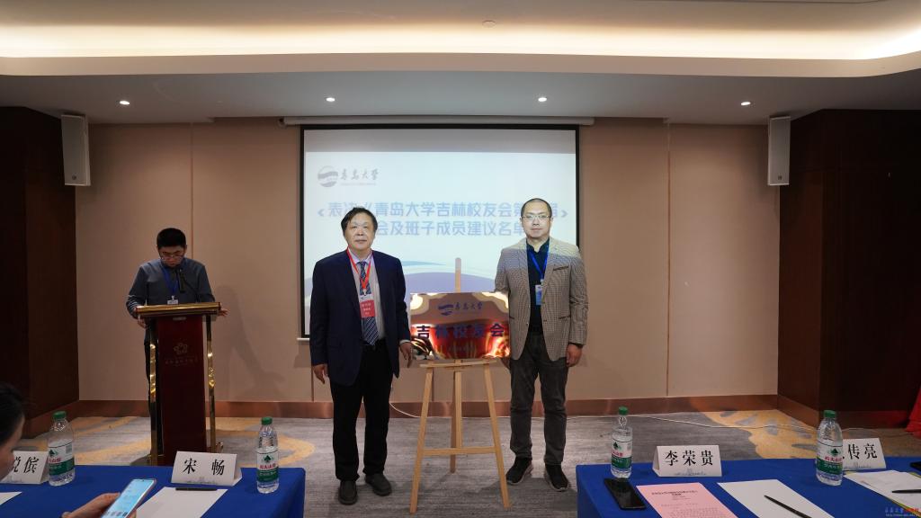 李荣贵与新当选的吉林校友会会长、2005级电子商务专业闫锐傧为吉林校友会授牌,并为其颁发聘书。张传亮为吉林校友会常务副会长、2002级热能与动力工程专业于锋,副会长、2013级软件工程专业王斌,秘书长、2014级软件工程张天一颁发聘书。